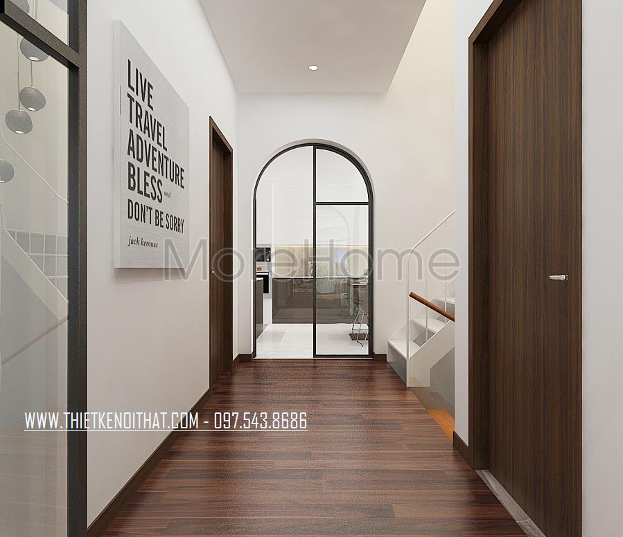 Thiết kế nội thất biệt thự Xuân Phương là sự kết hợp hài hòa của các thiết kế mang vẻ đẹp phá cách và hiện đại. Điển hình là cầu thang được sử dụng vật liệu mới lạ. Thay vì việc ứng dụng cấu trúc build-in cứng nhắc thì kiến trúc sư lại khéo léo sử dụng vật liệu nhẹ, tạo không gian mở và khoảng trống giữa các bậc thang góp phần lớn tăng độ thoáng và mở cho thiết kế.