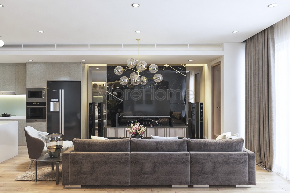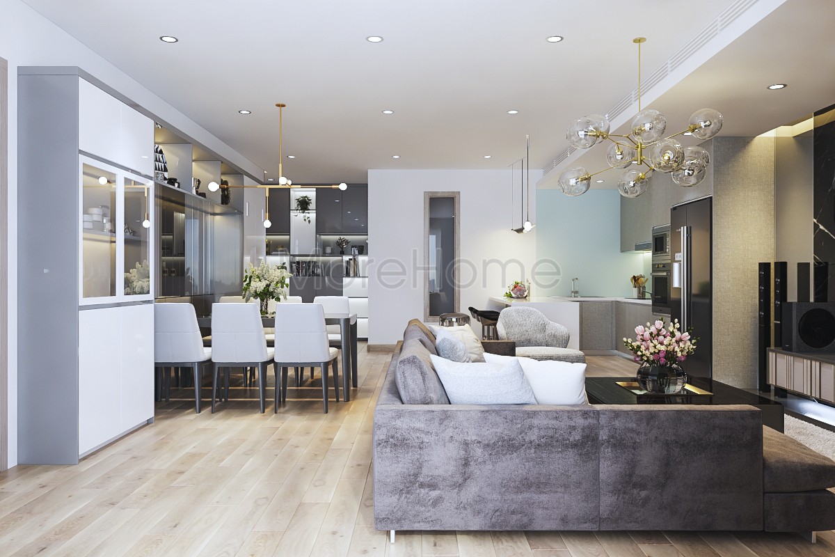 Thiết kế nội thất Đảo Kim Cương Quận 2 là một trong những thiết kế nổi bật của phong cách này. Lấy các tone màu hiện đại, sáng trắng làm nền giúp không gian trở nên mở và thoáng hơn rất nhiều so với các thiết kế sử dụng tone màu nền ấm. Bên cạnh đó, việc lựa chọn màu sáng làm nền cũng giúp tôn lên các đường nét thiết kế, nổi bật các điểm nhấn khác, tạo ấn tượng cho thiết kế.