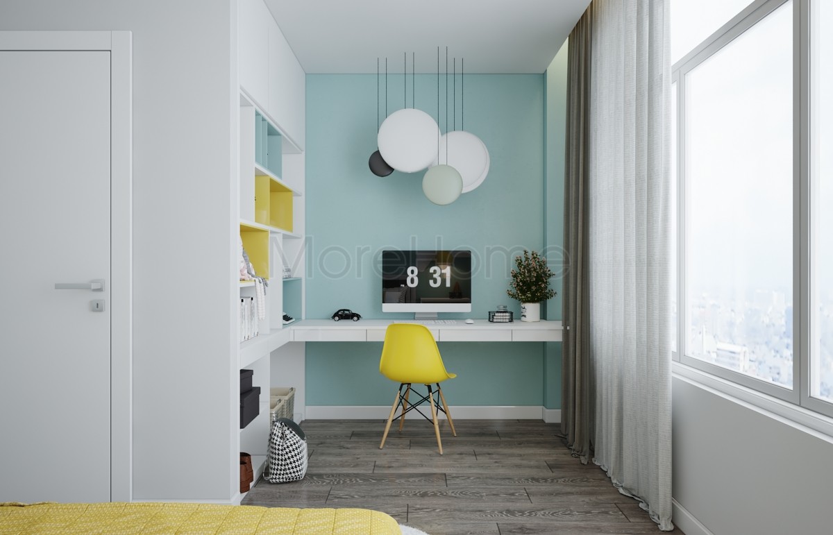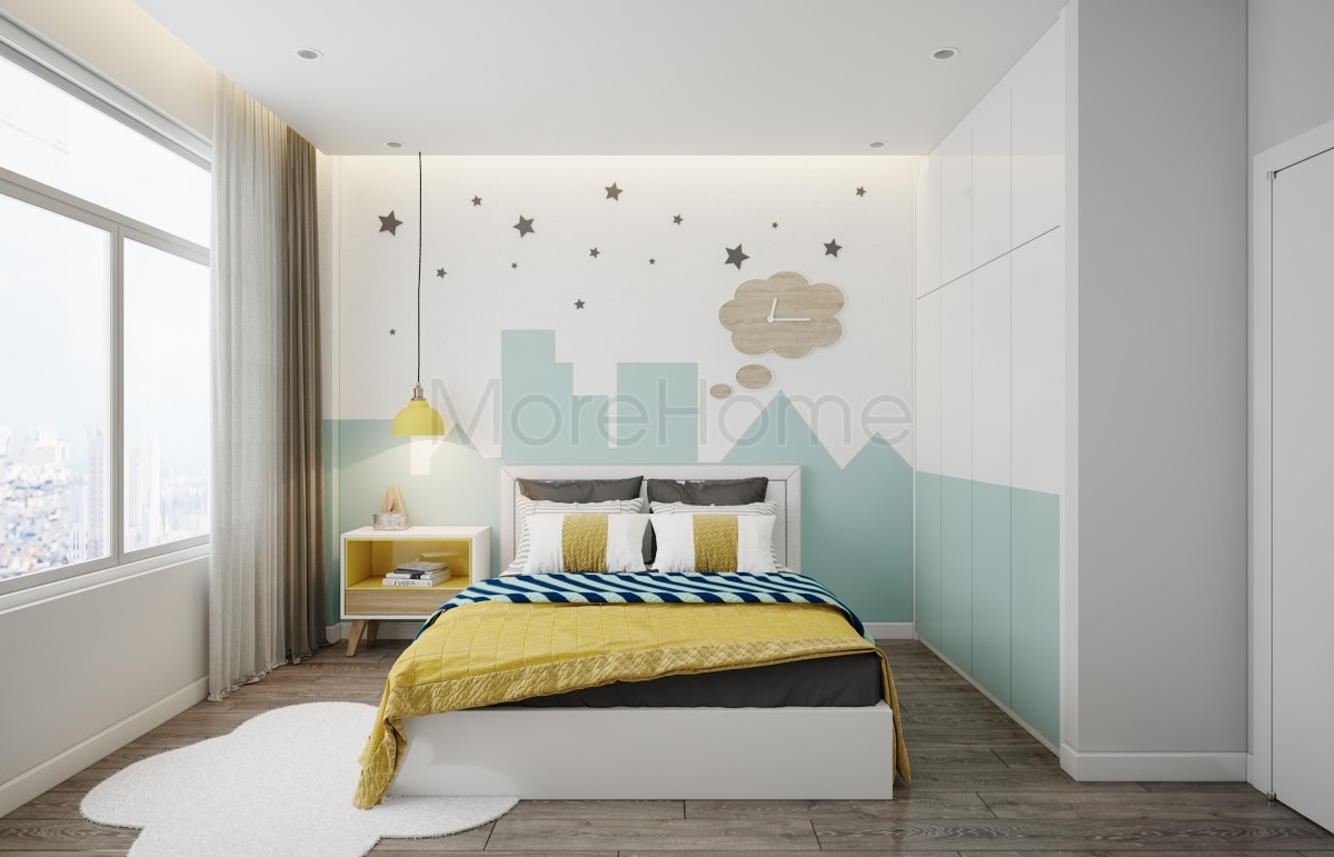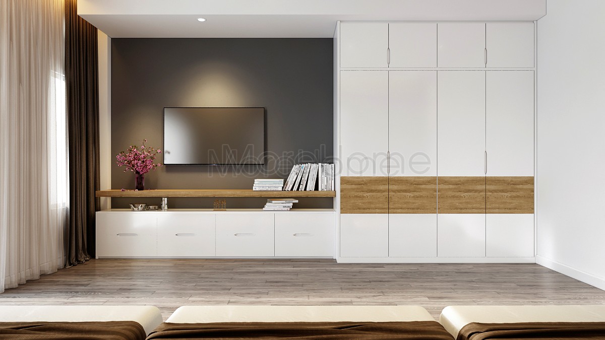 Chính vì thiết kế không quá cầu kỳ, hầu hết đều theo lối đơn giản hóa nên các vật dụng được hạn chế tối đa, ngay cả kệ ti vi cũng được kiến trúc sư rút gọn, một kệ nhỏ kết hợp ngăn kéo được thay thế khá gọn gàng vừa đảm bảo giữ nguyên tính công năng lại không làm mất đi sự trẻ trung cho căn phòng, đặc biệt tiết kiệm không gian sử dụng.