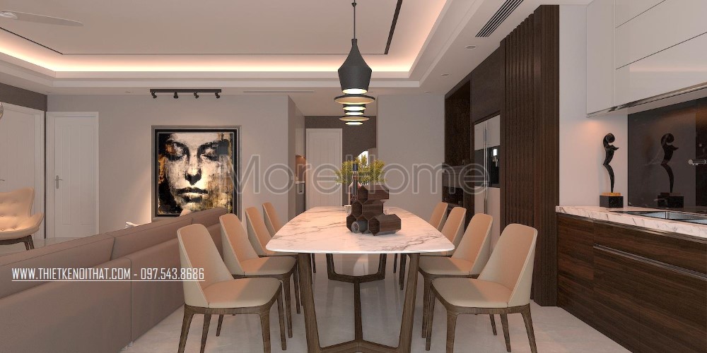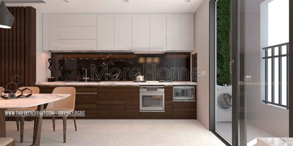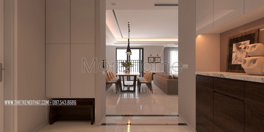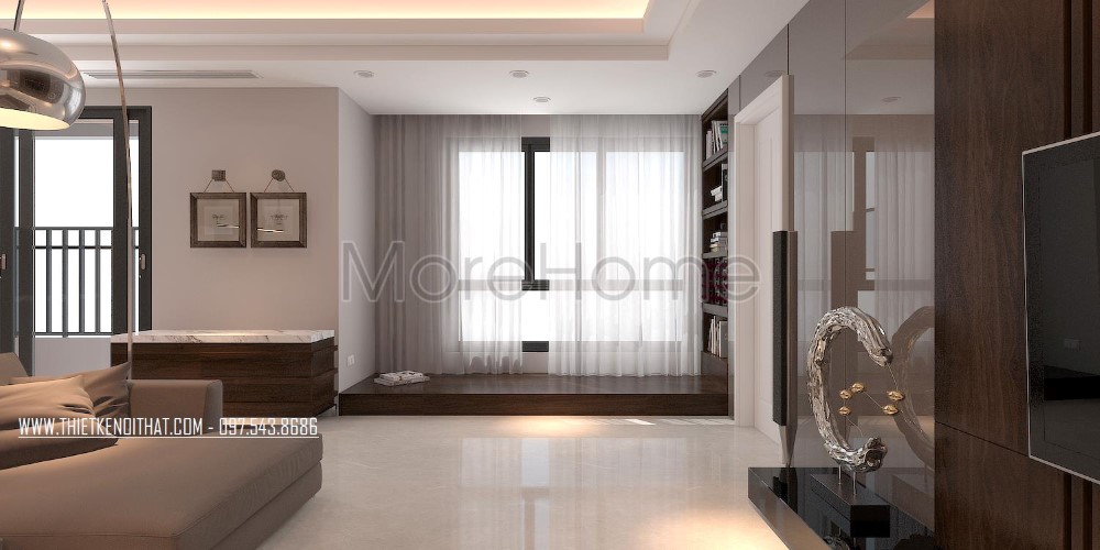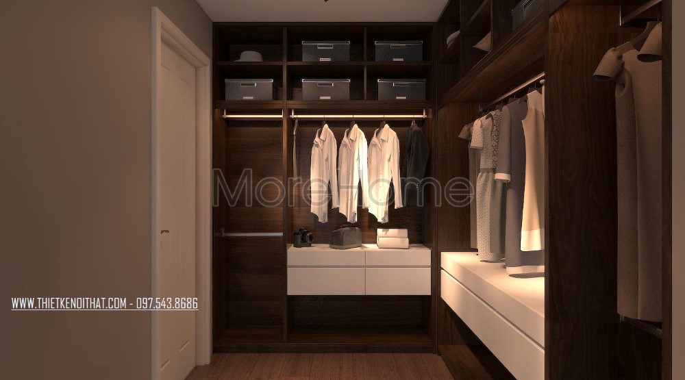 Thiết kế nội thất gỗ óc chó chung cư hiện đại tại Timescity