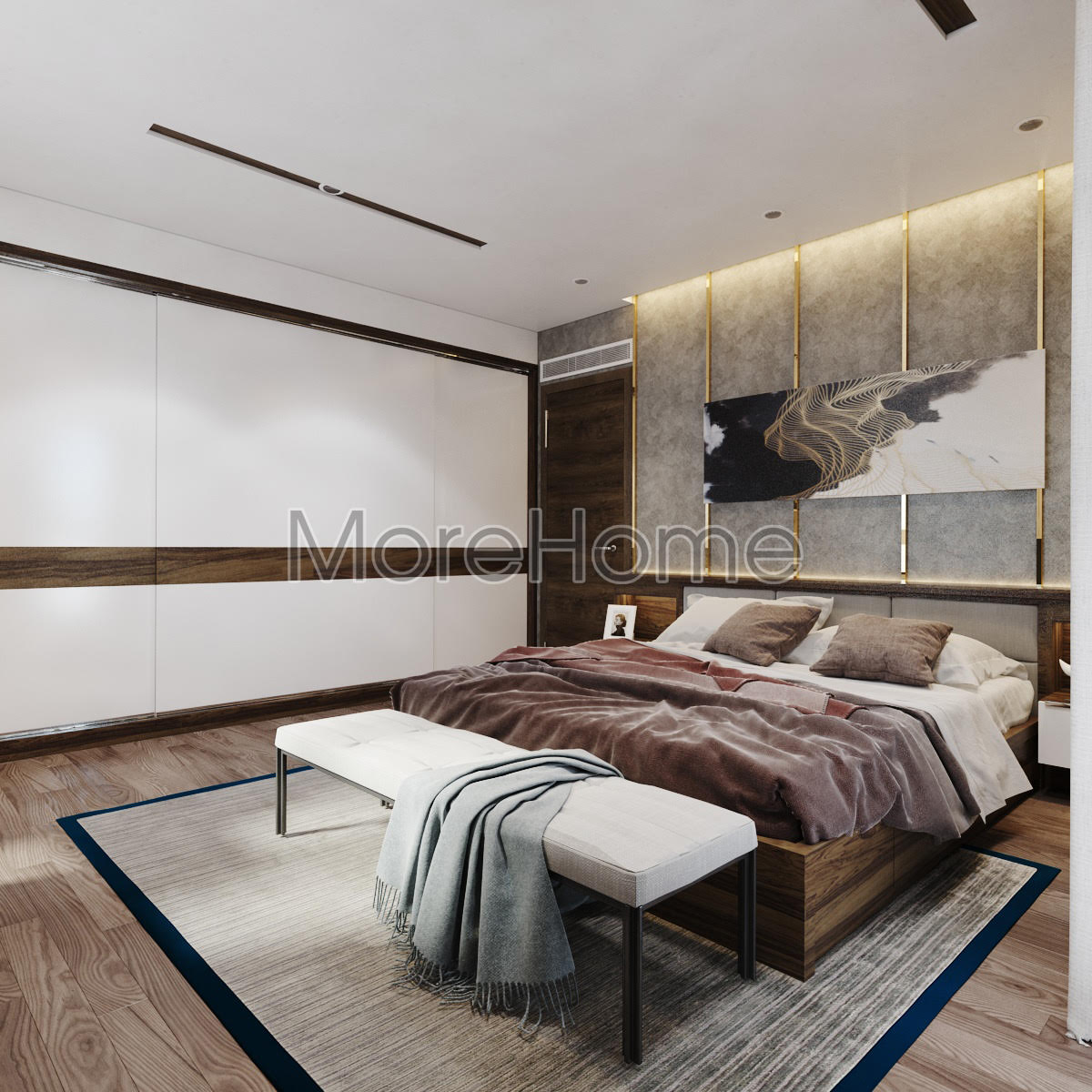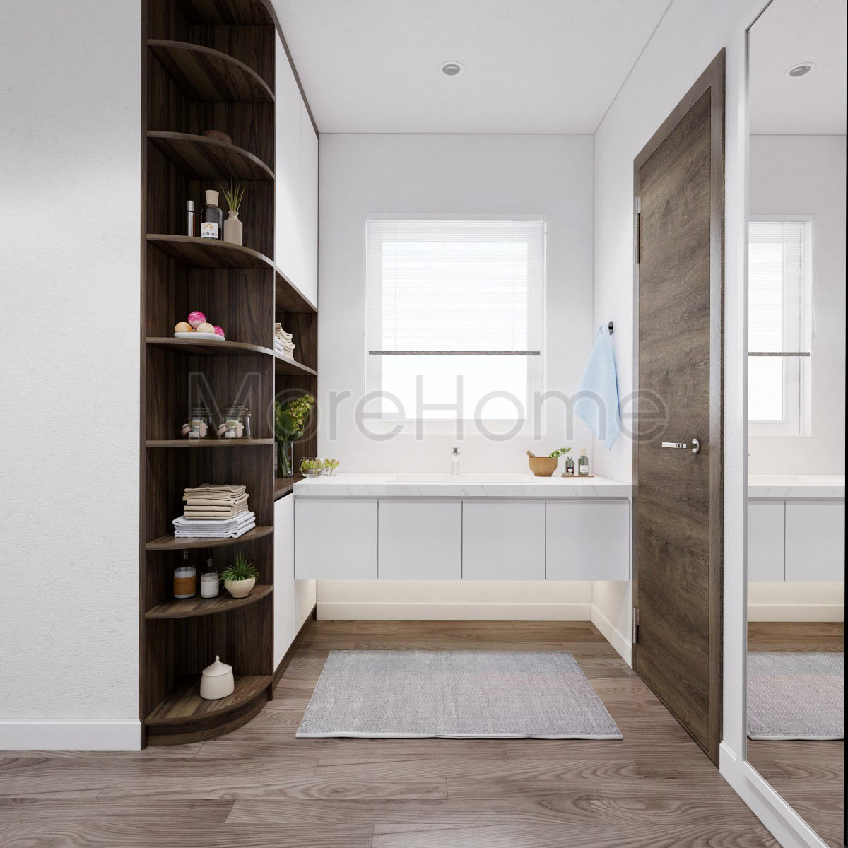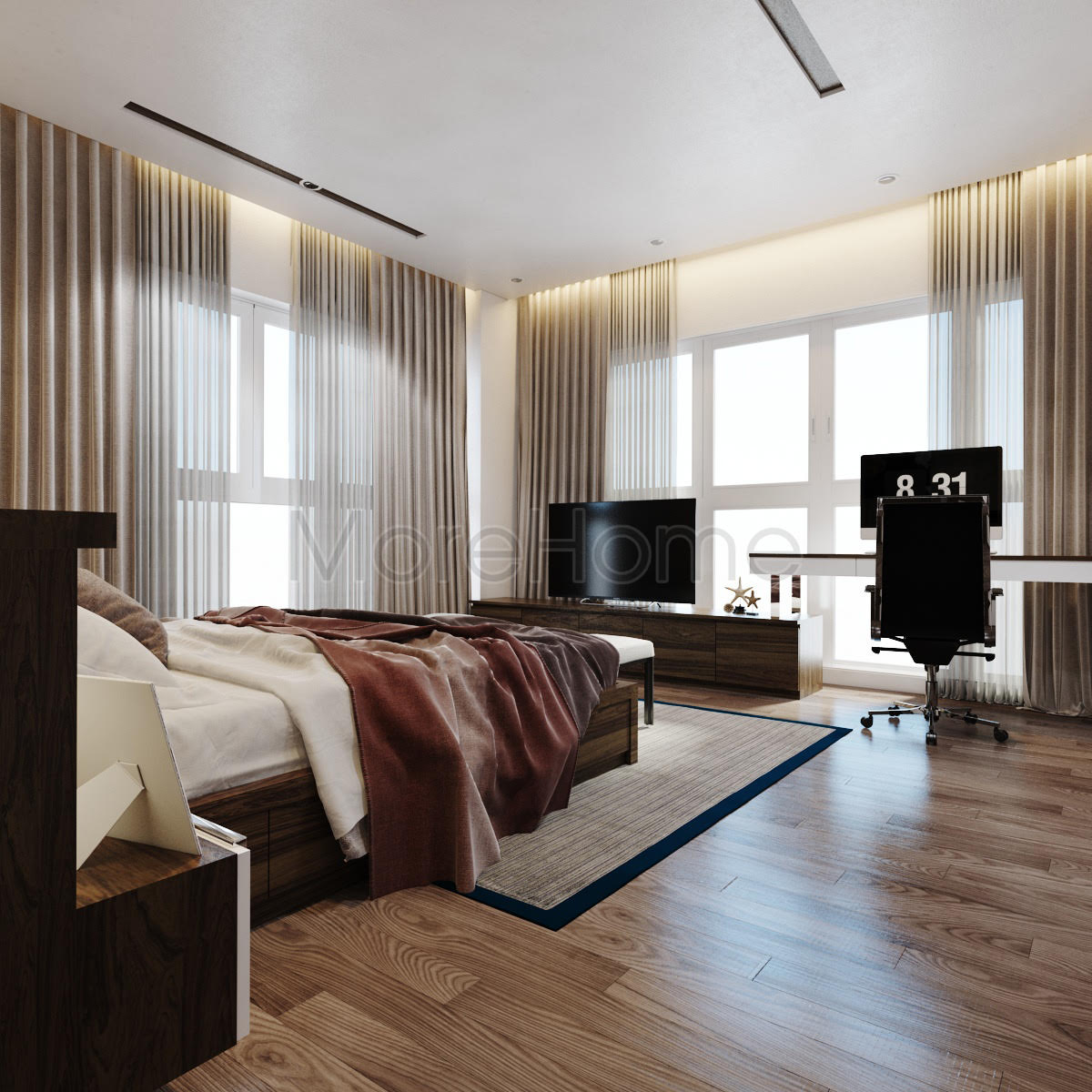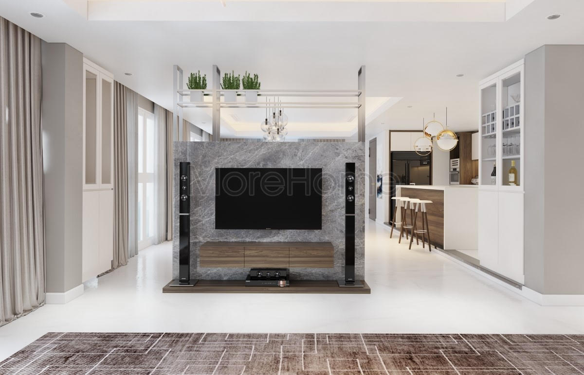 Các bạn đang được quan sát mẫu thiết kế nội thất căn hộ chung cư Happy Valley - Quận 7 Tphcm với phong cách hiện đại, sang trọng và mới lạ với gỗ óc chó do KTS Morehome thực hiện.