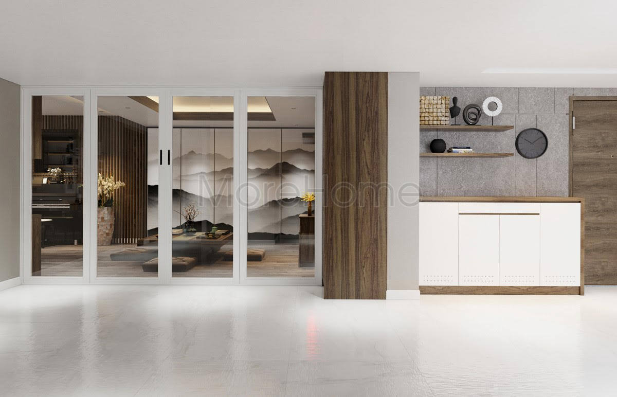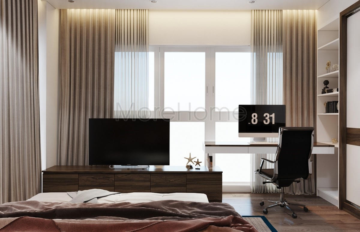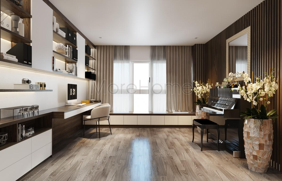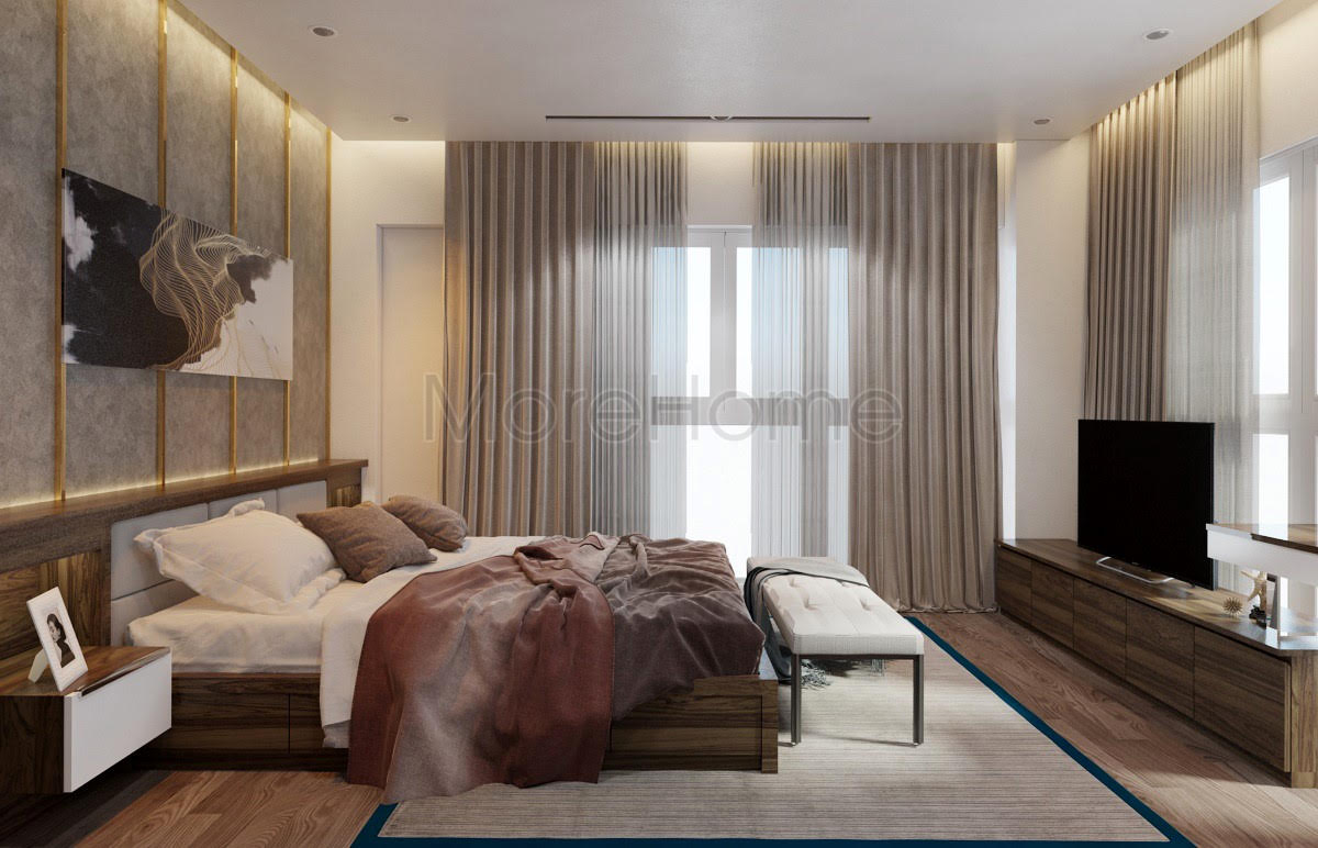 Các bạn đang được quan sát mẫu thiết kế nội thất căn hộ chung cư Happy Valley - Quận 7 Tphcm với phong cách hiện đại, sang trọng và mới lạ với gỗ óc chó do KTS Morehome thực hiện.