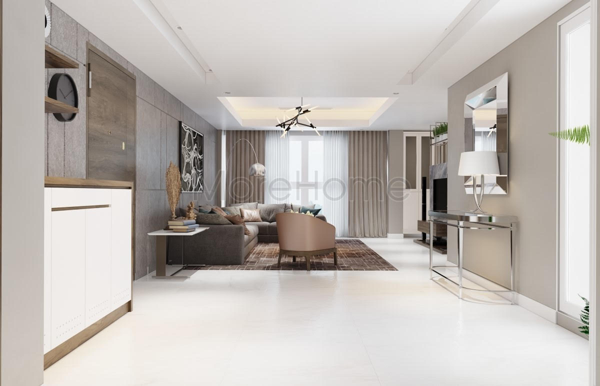 Như các bạn thấy, tổng quan căn hộ được thiết kế với tông màu nâu trầm, đây là tông màu rất kén khách, nhưng với sự xử lý tài tình và sự sáng tạo không ngừng của KTS. Bên cạnh đó cũng không thể thiếu sự tôn trọng thiết kế của người chủ nhà có gu thẩm mỹ rất cao.