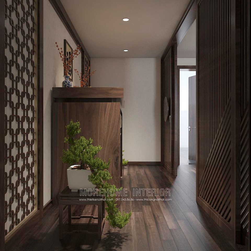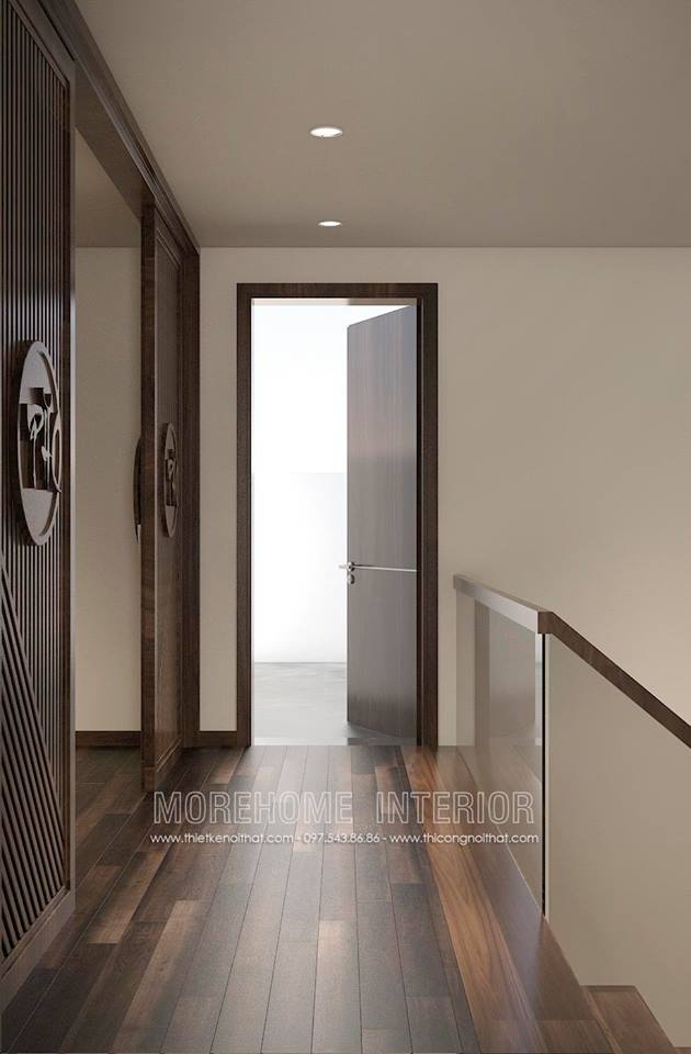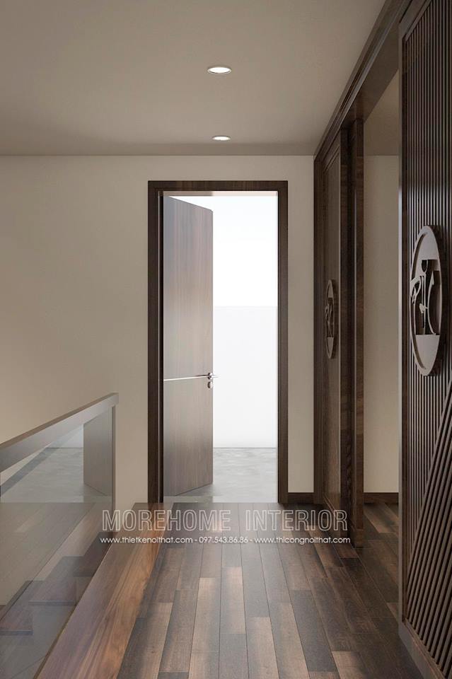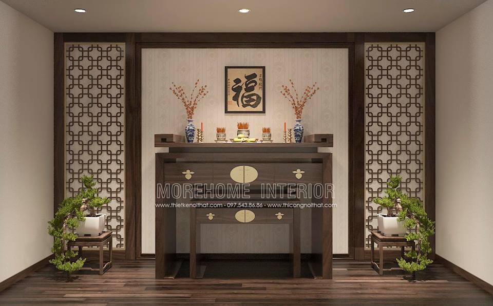 Phòng thờ đưuọc thiết kế ở tầng trên cùng của căn biệt thự. Phòng thờ riêng biệt được thiết kế với vách ngăn cửa trượt bằng gỗ cao cấp tạo không gian thờ cúng linh thiêng. Chiếc bàn thờ hiện đại được thiết kế phù hợp với không gian này.