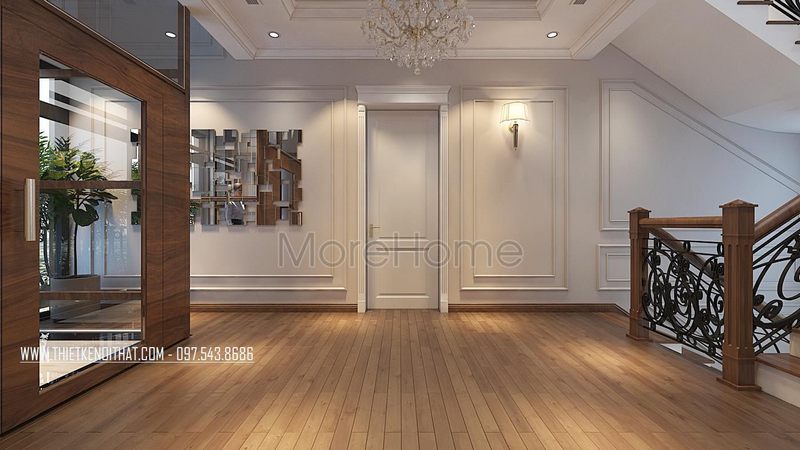 Hành lang tầng được thiết kế để kết nối các không gian phòng với nhau, tạo ra một không gian di chuyển đi lại thoải mái. Ngoài ra, nó còn mang lại sự phong thủy và tài lộc, may mắn cho gia chủ.