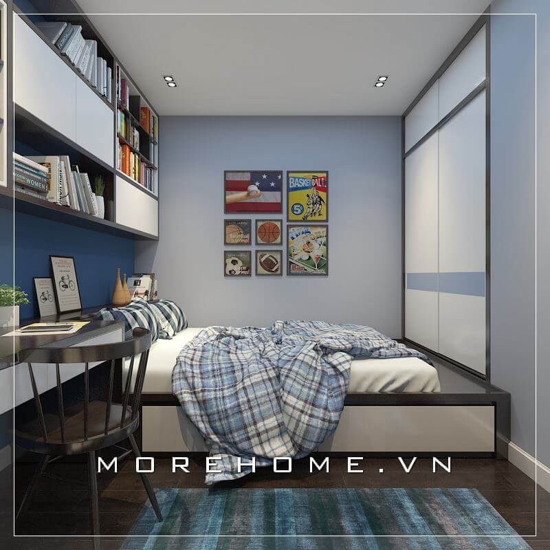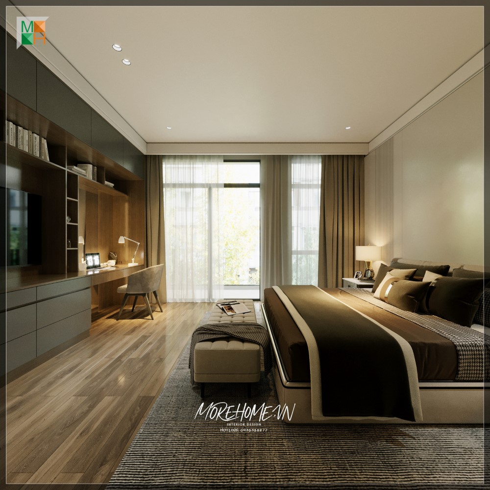Phòng ngủ có bàn làm việc trang trí nội thất tiện lợi thoải mái cho sử dụng của gia chủ, không gian riêng tư phù hợp với sở thích cá tính của chủ nhân
